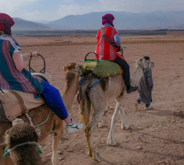 Your journey begins with a complimentary pickup from your hotel or riad in Marrakech. After a short scenic drive, you’ll arrive at a traditional Berber camp in the heart of Agafay, where your camel and guide await. With assistance, you’ll mount your camel — a calm and well-trained animal — and begin a peaceful trek across rolling dunes, rocky outcrops, and open desert plains.
