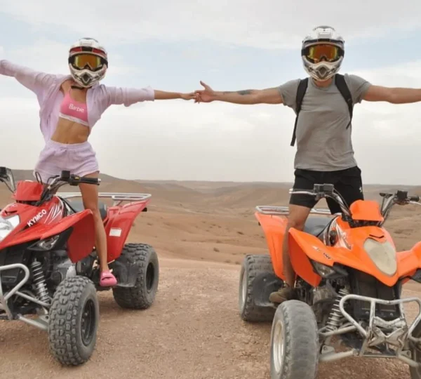 Rev up your Marrakech visit with the Agafay Desert Quad Riding Adventure 1H — a thrilling 1-hour off-road journey through the rugged stone desert of Agafay, a stunning alternative to the Sahara located just a short drive from the city. Whether you’re craving adventure or a unique way to see Morocco’s natural beauty, this guided quad biking tour delivers excitement, freedom, and unforgettable views.