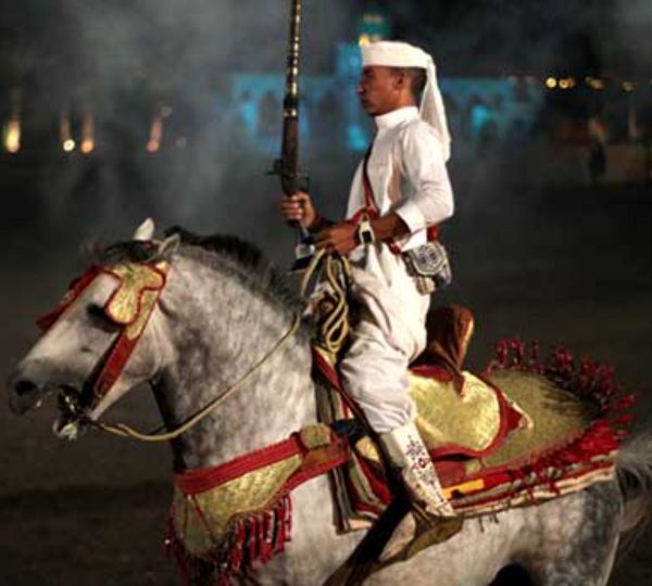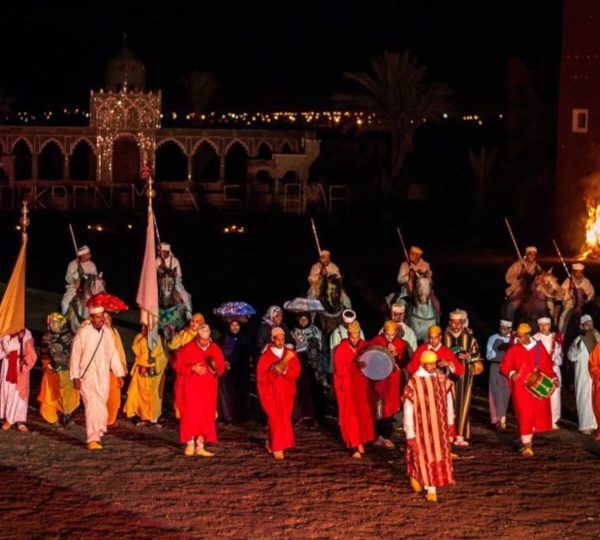 The highlight? The Fantasia rifle show — a powerful display of synchronized horsemanship where riders in traditional attire charge across the arena, firing muskets in unison, a tradition rooted in Morocco’s warrior heritage. This is followed by vibrant dance performances from across Morocco, including Gnawa rhythms, Amazigh (Berber) folklore, and belly dancing, all accompanied by live musicians.